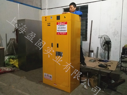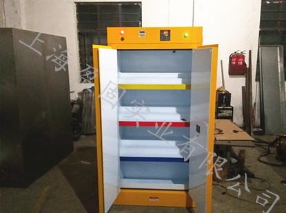 儲存柜外殼體采用雙層防火鋼板結構,柜低采用一體式設計,較大程度的增加其牢固度,內外表面先經拋除油污工藝,再經環(huán)氧樹脂粉末噴涂,烘熱固化處理.