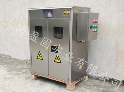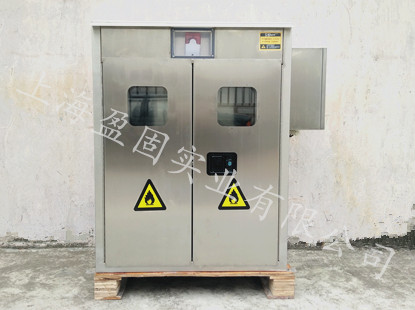 柜體采用雙層1.5mm厚304不銹鋼結(jié)構(gòu),兩層鋼板之間為37mm防火隔熱層,具有防火防爆性能卓越的特點(diǎn),其材質(zhì)且具有很好的防腐功能;內(nèi)膽采用隱蔽式焊接一體成型技術(shù),外表無明顯焊點(diǎn),確保了外表的美觀;帶雙層鋼化玻璃視窗的雙柜門與柜體之間裝置的防火密封條,密封、防火性能卓越;柜內(nèi)根據(jù)所儲存氣體的性質(zhì)及密度選用安裝的防爆探頭,靈敏度高,探頭分辨率1%LEL,量程0-100%LEL.